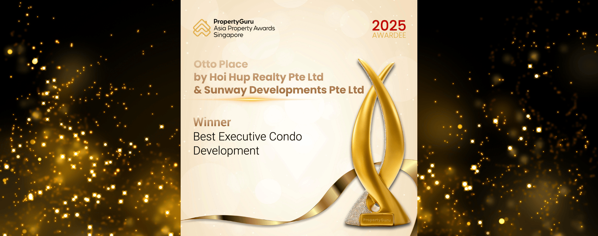 We are honoured and happy to share that Otto Place, a joint venture between Hoi Hup Realty Pte Ltd and Sunway Developments Pte Ltd, has been awarded Best Executive Condo Development at the PropertyGuru Asia Property Awards 2025!